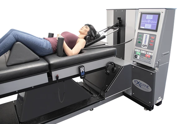 The gentle distractive forces of the Spinal Decompression create a decompression of the spine with unloading due to distraction and proper positioning, to improve blood flow and nutrient exchange to the injured area. You'll experience several cycles of stretch and relaxation, which graduate to a peak over a period of several minutes.